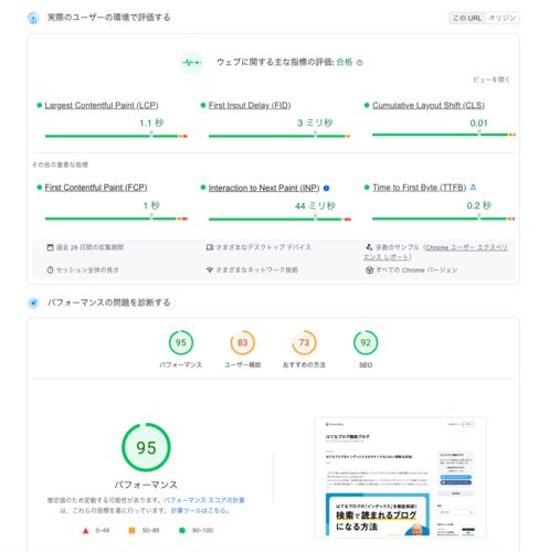 はてなブログの閲覧体験への取り組みを続けています。Core Web VitalsもPage Speed Insights のパフォーマンススコアも大きく改善しています。